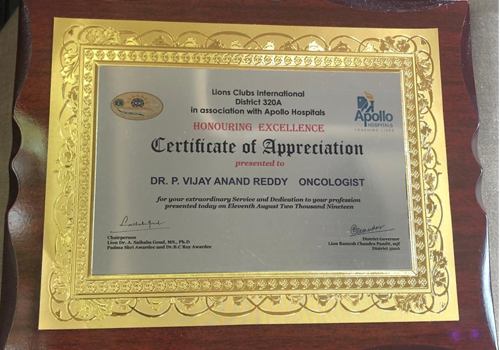 5.Lions Club International has presented Excellence Award for extraordinary service and contribution to the field of Oncology on 11th August 2019