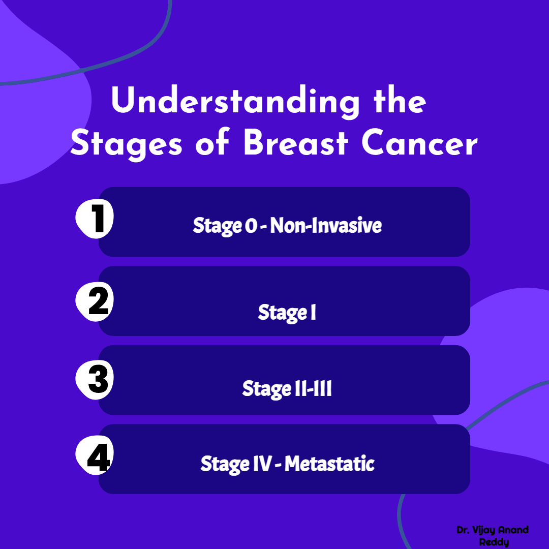 • Stage 0 (Non-Invasive): Cancer cells remain within the breast duct and have not invaded nearby tissues.
